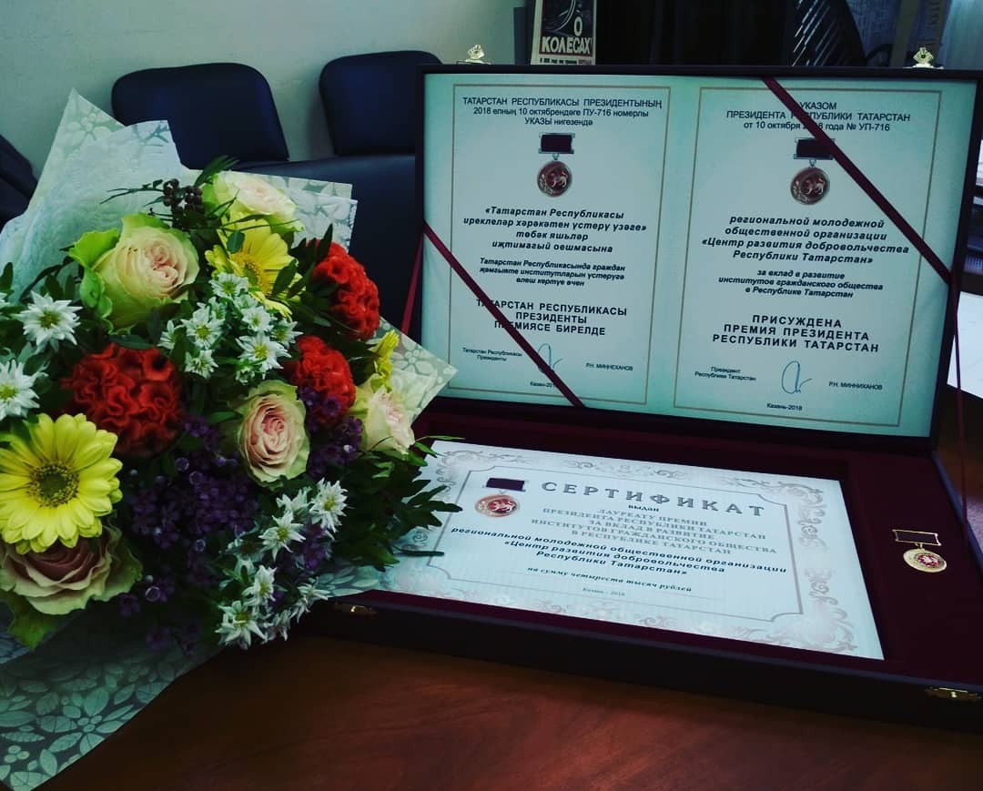 11 октября 2018 года Президент Республики Татарстан Рустам Минниханов вручил премии за вклад в развитие институтов гражданского общества в Татарстане.