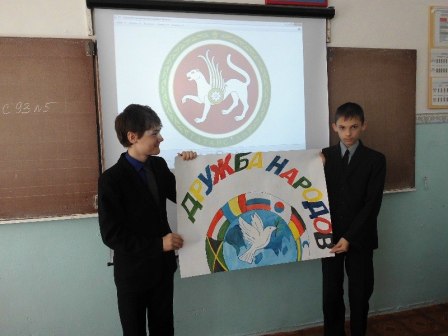 Далее рассказ пошел о нашем родном крае – Татарстане. Республика Татарстан – одна из крупнейших в России многонациональных республик, где проживают 115 народов, каждый из которых обладает уникальными особенностями материальной и духовной культуры. Школьники поделились своими знаниями о своей республике.