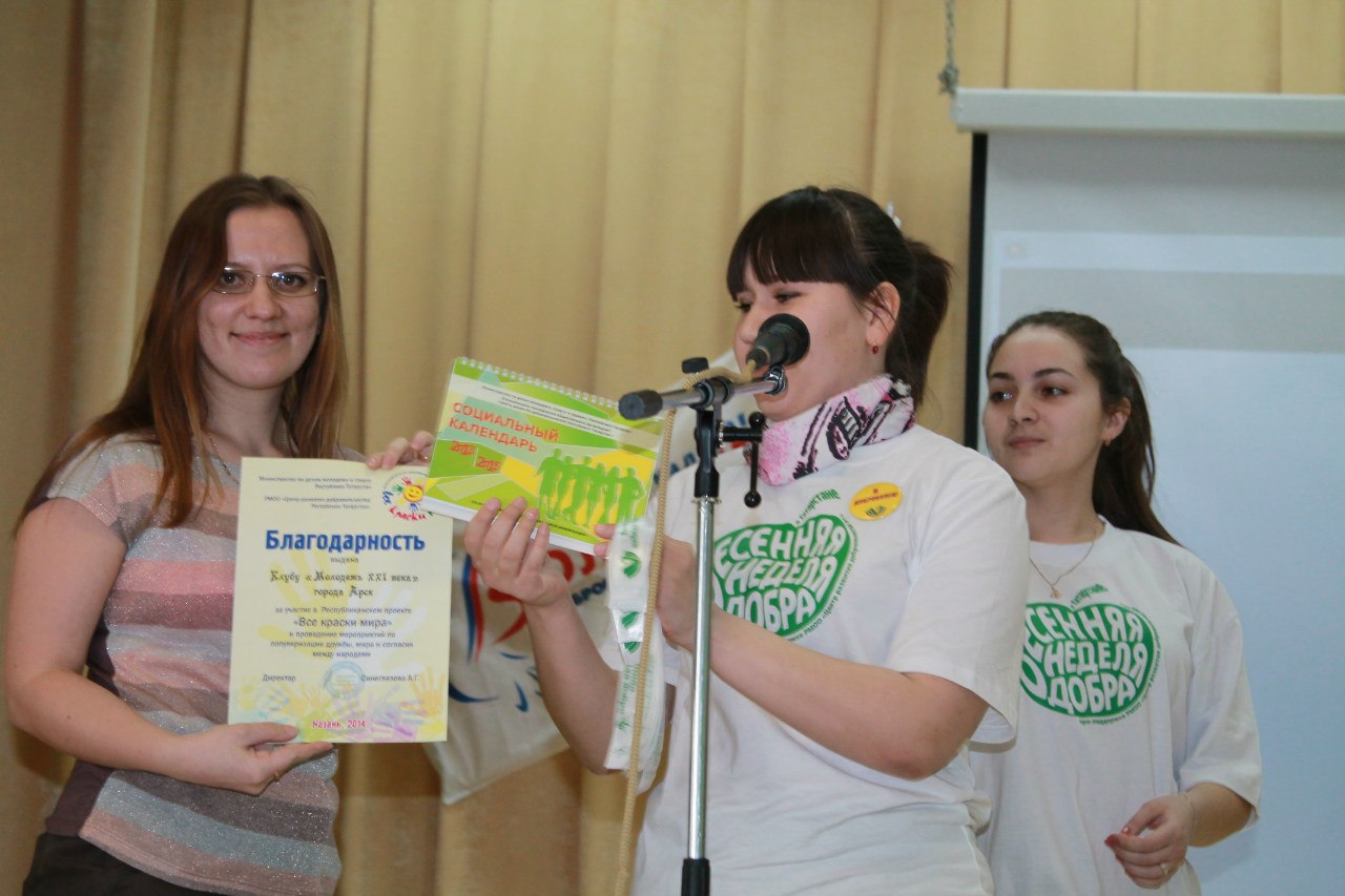Они показали различные видеоролики про ВНД, презентацию про проделанные добрые дела за 2 года, были подготовлены музыкальные номера. Так же на празднике присутствовали: Заместитель директора ГАОУ СПО "Арский педагогический колледж им. Г. Тукая" Гафарова Г.Р., Директор "Центра милосердия" Багаутдинова Р.Р., Куратор ДЦ"Волонтер" г. Арск Нурмиева И.Р., Директор филиала ОАО ТАТМЕДИА "Телерадиокомпания "Арча" ,Председатель Аграрного молодежного объединения РТ по Арскому району Мухутдинов Р.Р., Специалист отдела по делам молодежи спорту и туризму Арского исполнительного комитета Зарипов Р. З. Каждому из гостей были вручены значки "Я доброволец" и ленточки "ВНД" , этими же подарками были награждены самые активные волонтеры, так же от имени Центра Развития Добровольчества мы вручили подарки клубу "Молодежь 21 века" Спасибо всем, кто помог нам организовать это мероприятие.