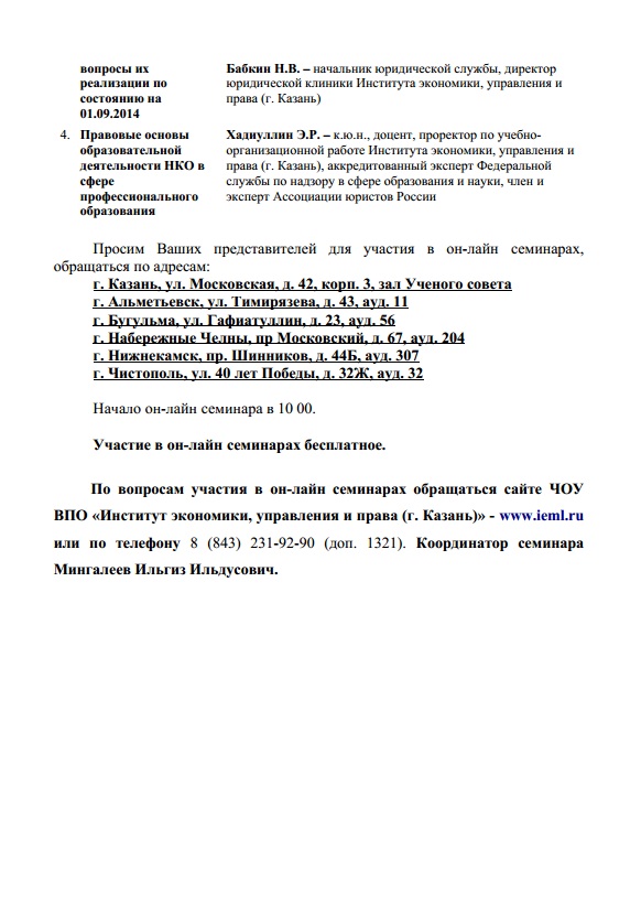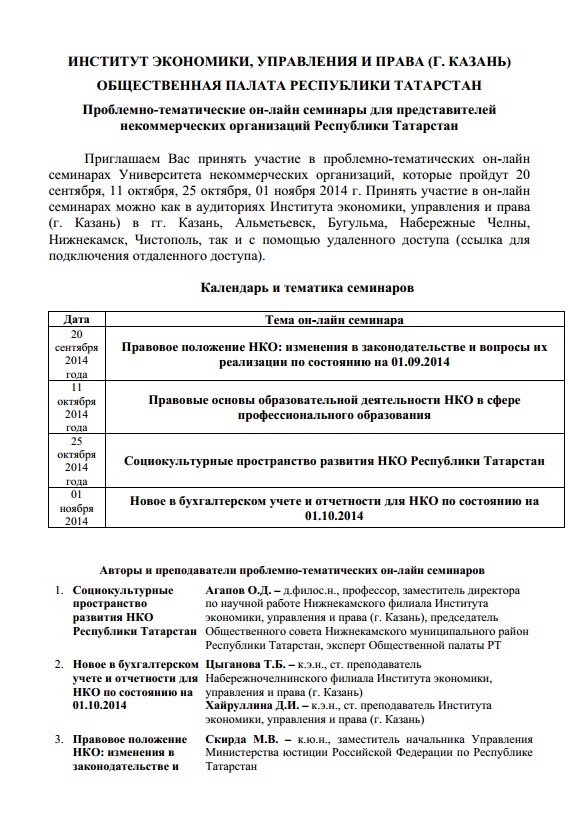 Проблемно-тематические он-лайн семинары для представителей некоммерческих организаций Республики Татарстан