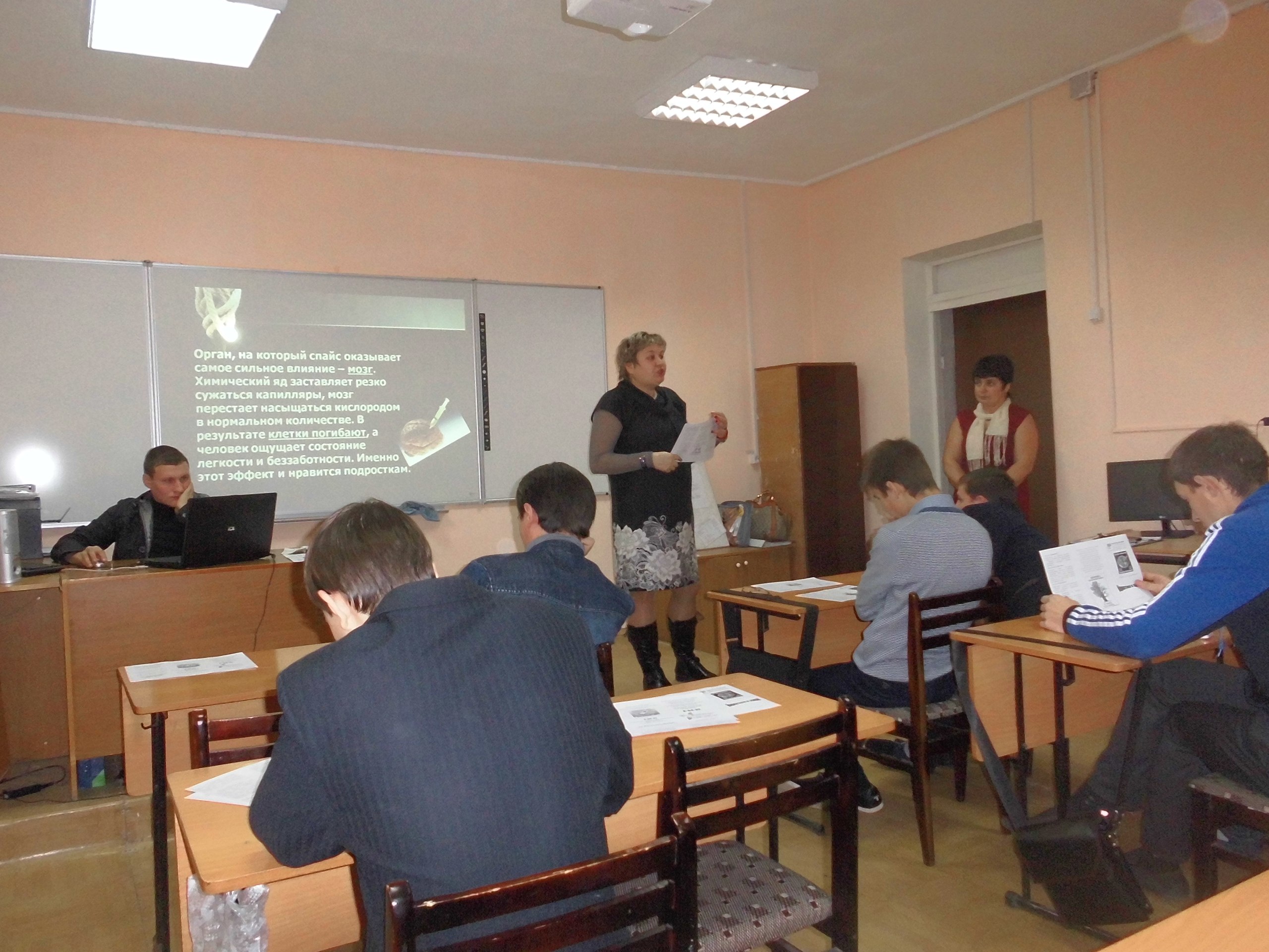Студентам были представлены презентация «Смертельные спайсы», документальный фильм «Смертельные последствия употребления спайсов», каждый участник занятий получил буклеты «Наркотики и закон», «Телефон доверия» и сувенир на память о встрече с добровольцами.