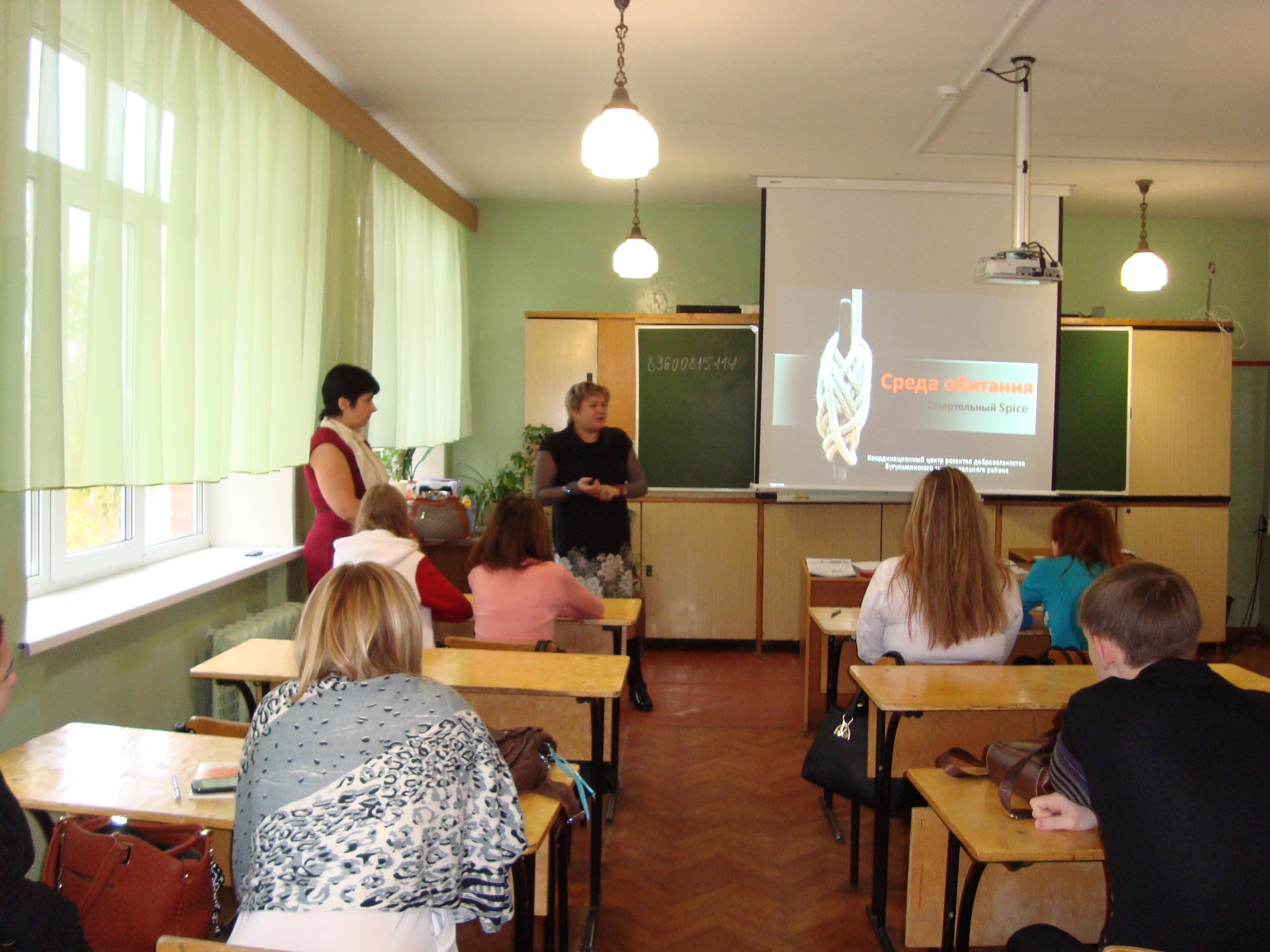 С 6 по 11 октября 2014 года профилактические добровольцами в Бугульминском строительно-техническом колледже совместно с зам.директора по ВР Земсковой М.М. для 102 студентов I-х, II-х курсов и преподавателей были проведены интерактивные занятия «Среда обитания. Смертельные спайсы» в рамках реализации Республиканского добровольческого проекта «Сессия здоровья».