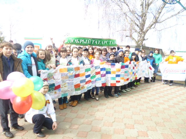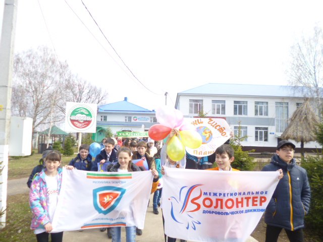 В актовом зале КЦСОН «Шафкатъ» добровольцы представили свою деятельность в виде презентации, рассказали о своих добрых делах. Всех участников угостили бесплатным поп-корном. В этот день был дан старт Всероссийской акции «Письмо Победы». Ребята писали письма в прошлое своим членам семьи, принимавшим участие в Великой Отечественной войне. Участники марша, построившись в колонну и выкрикивая добровольческие лозунги, прошли по улицам, держа в руках «Полотно мира», и в завершение сделали общее позитивное фото. Среди ребят царила атмосфера дружелюбия и весеннего настроения.