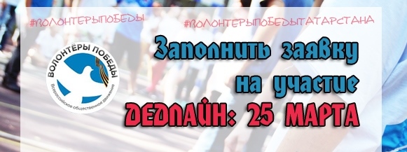 Региональная молодежная общественная организация «Центр развития добровольчества Республики Татарстан» при поддержке Министерства по делам молодежи и спорту Республики Татарстан, Общественной палаты Республики Татарстан с 27 по 29 марта 2016 года организует республиканский образовательный сбор «Волонтеры Победы».