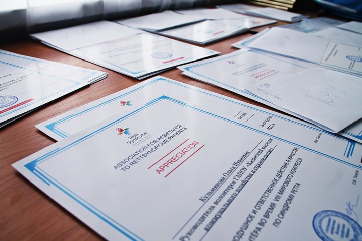 В Министерстве по делам молодёжи и спорту Республики Татарстан прошло вручение благодарностей волонтерам VIII Мирового конгресса по синдрому Ретта, который прошёл в Казани с 13 по 17 мая 2016.